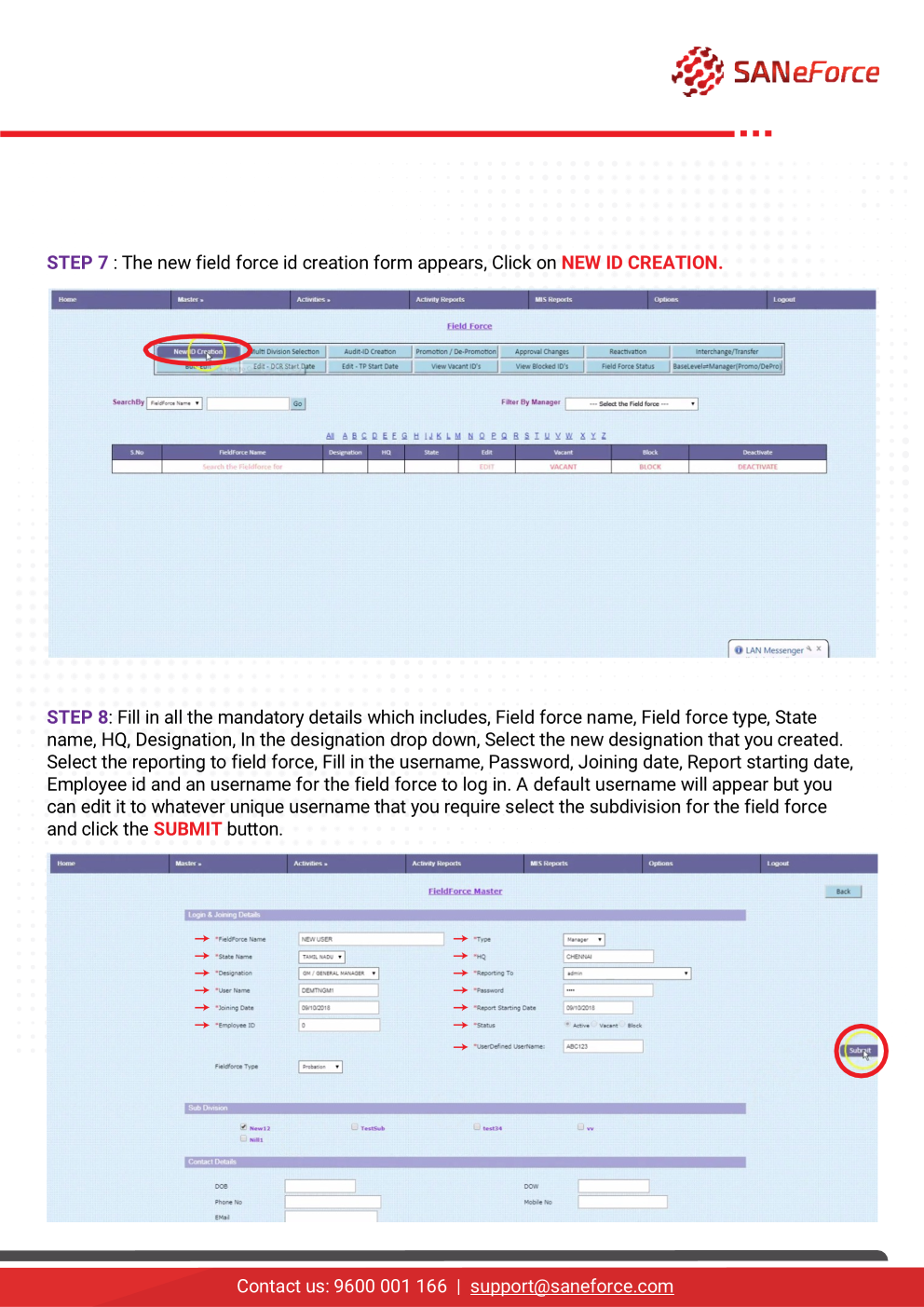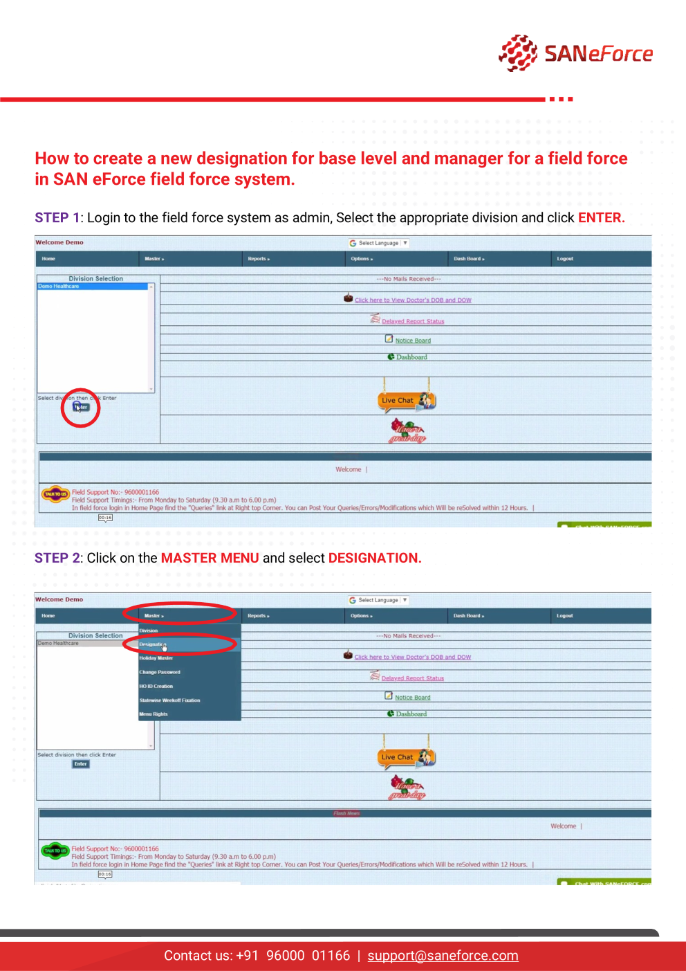 How to activate, edit, view, rejoin and de-active Base Level Vacant ID? "Log into the web application. Once you’re on the dashboard, select the division and click “Enter without Dashboard.” "In this page, under ‘Masters’ menu, select ‘Field ...