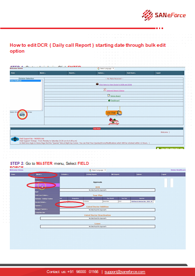 · In Home Page, Scroll down to select “Edit Call”. · Select Date from dropdown on top right corner of the application. · Select the Listed Doctor, Chemist, Stockist and Unlisted Doctor visited on the selected date. · Select “Submit” and now DCR has ...