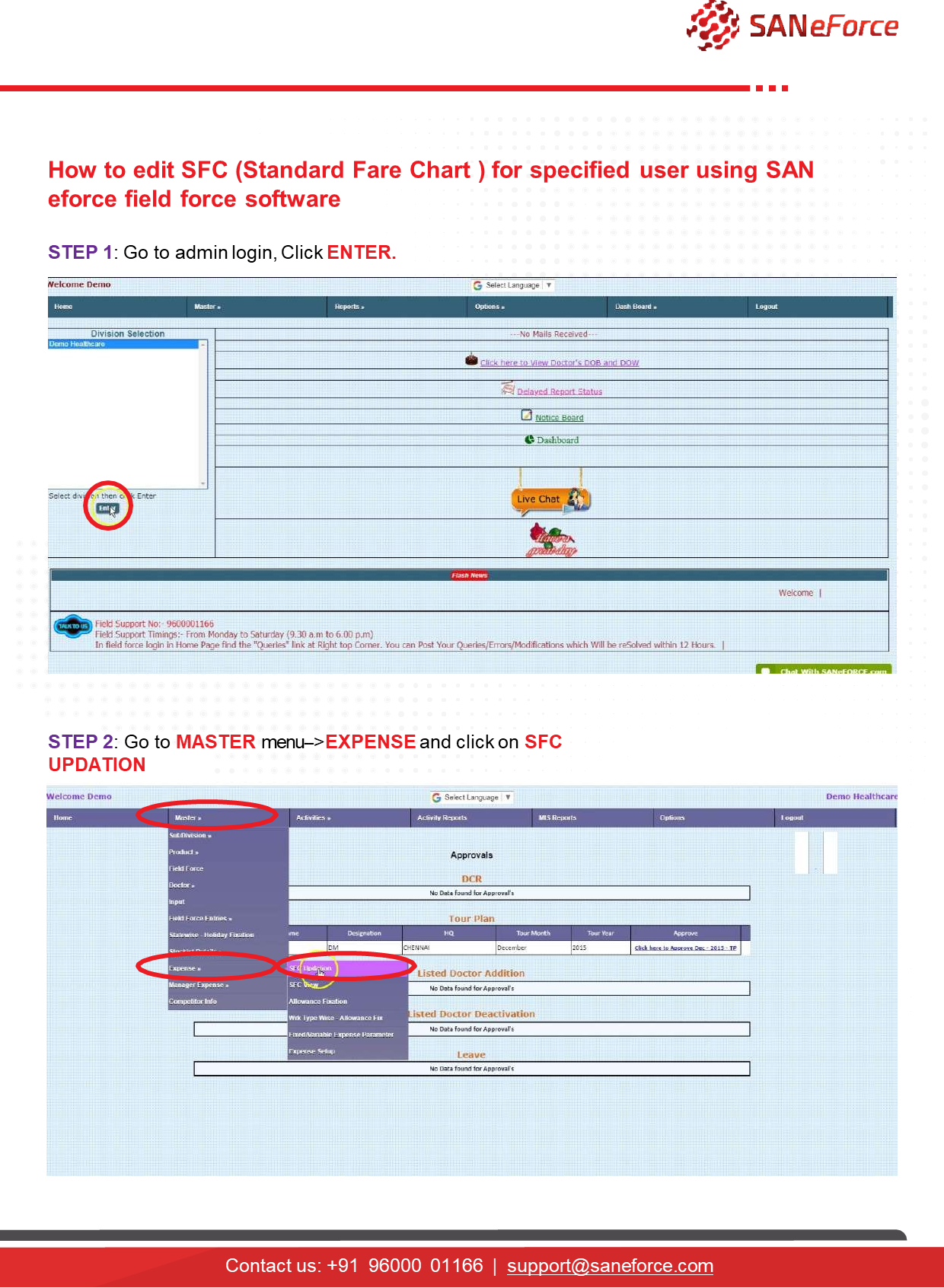 How to activate, edit, view, rejoin and de-active Base Level Vacant ID? "Log into the web application. Once you’re on the dashboard, select the division and click “Enter without Dashboard.” "In this page, under ‘Masters’ menu, select ‘Field ...